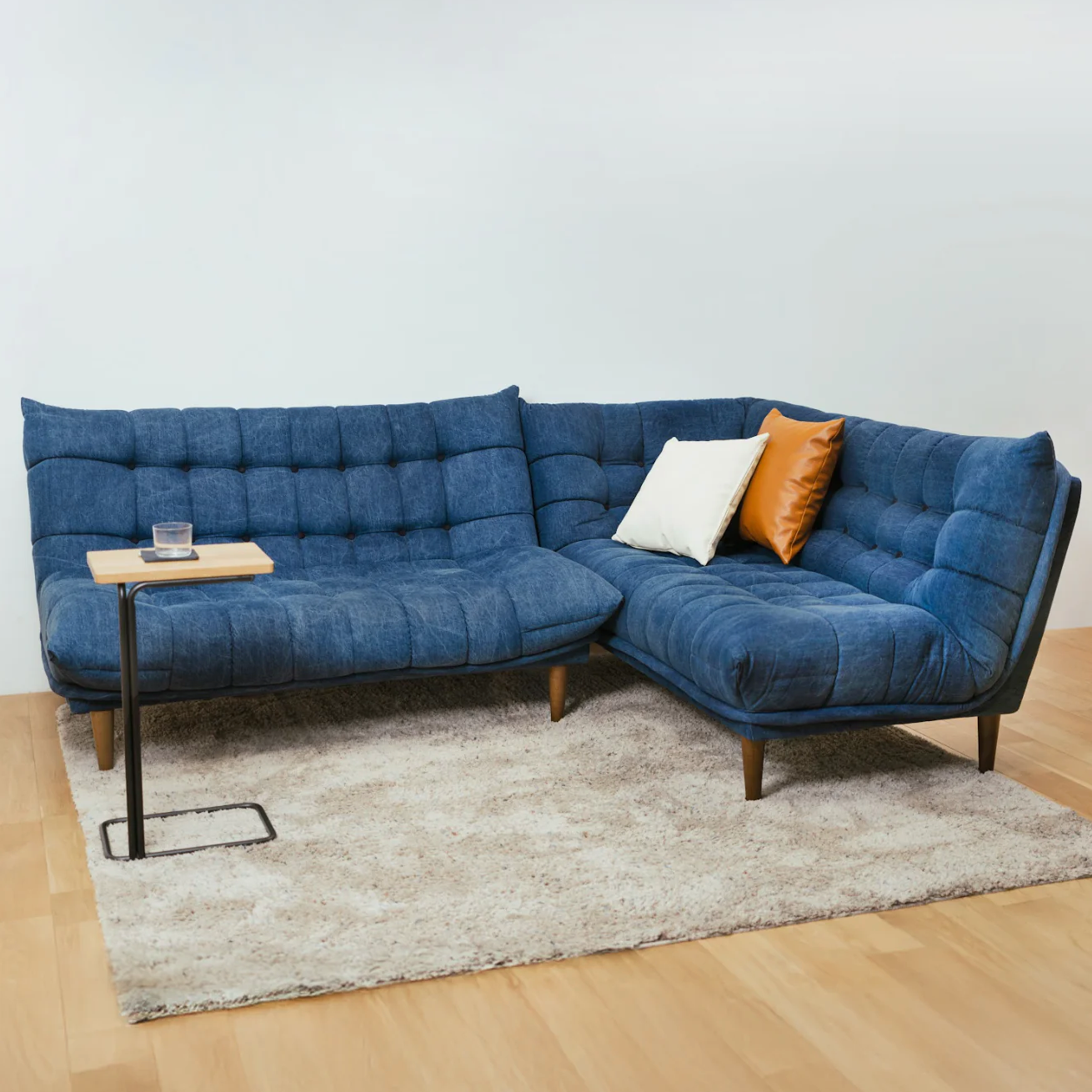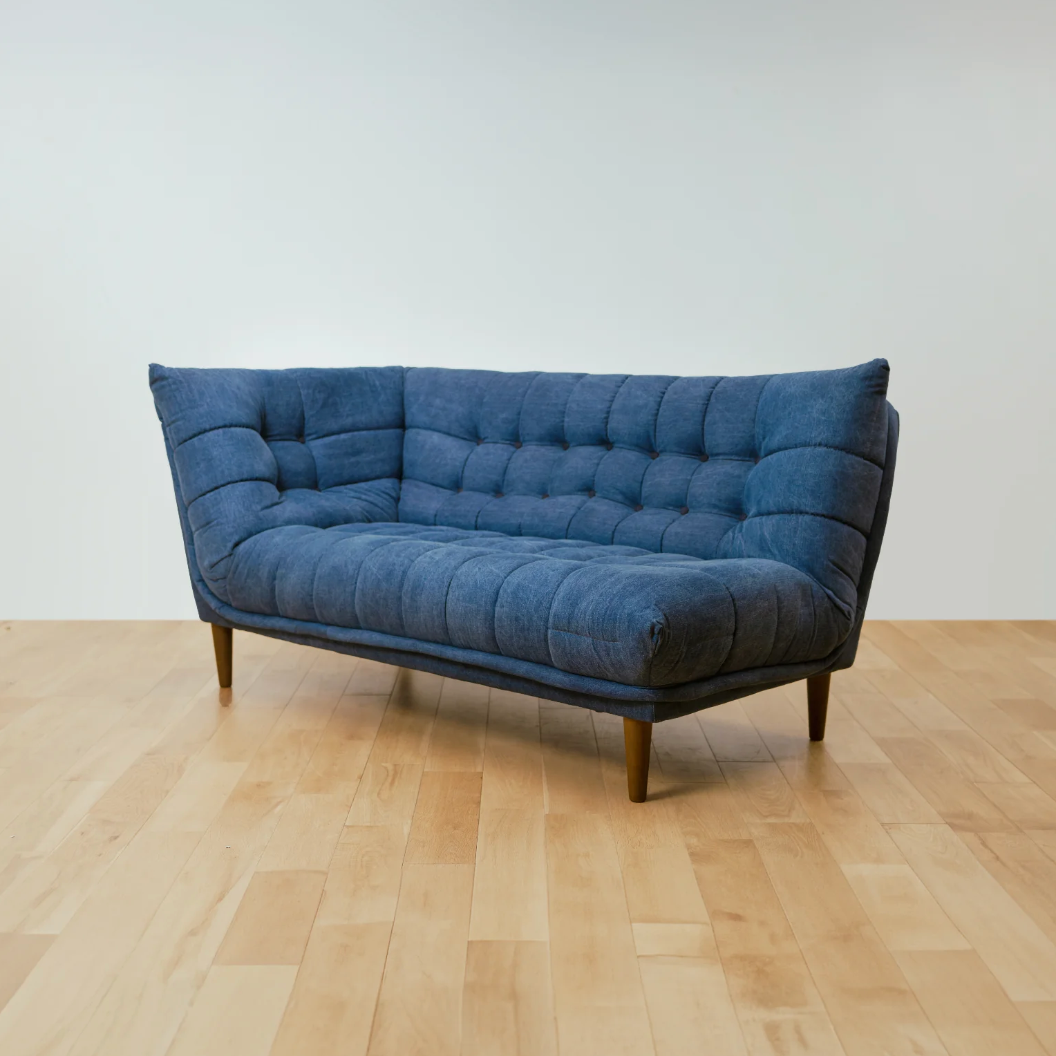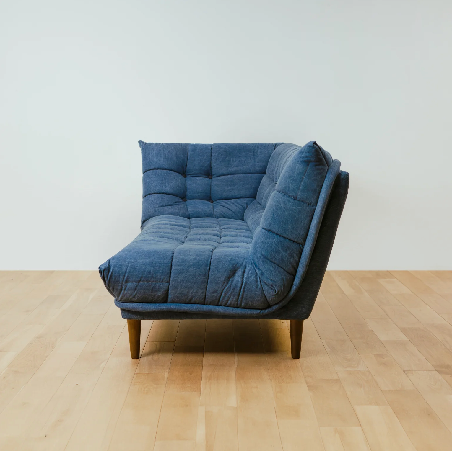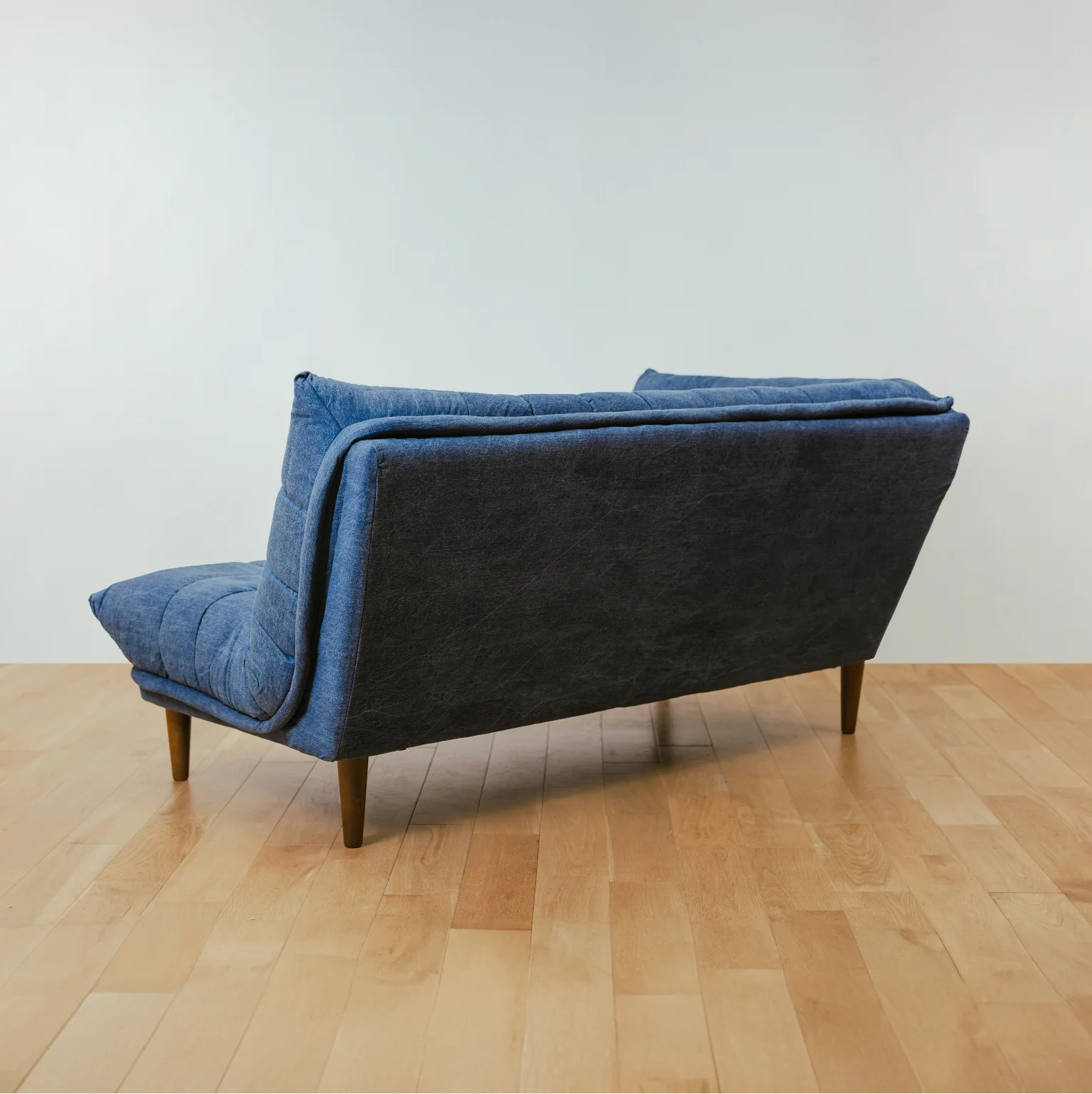 自 1960 年代起,岡山縣一直使用天然染料和傳統織造技術生產丹寧布料,高密度編織使其比普通丹寧布更耐用耐磨。沙發坐墊採用加厚高密度聚氨酯泡棉,格紋縫線設計、防止變形,讓坐感更舒適。