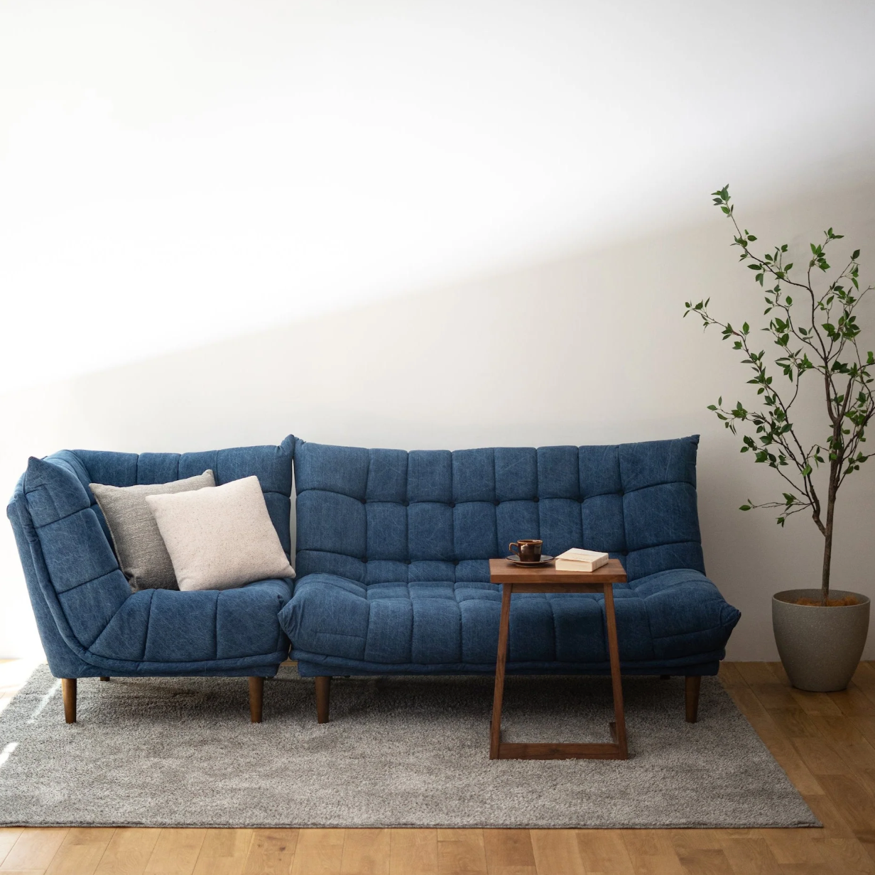 自 1960 年代起,岡山縣一直使用天然染料和傳統織造技術生產丹寧布料,高密度編織使其比普通丹寧布更耐用耐磨。沙發坐墊採用加厚高密度聚氨酯泡棉,格紋縫線設計、防止變形,讓坐感更舒適。