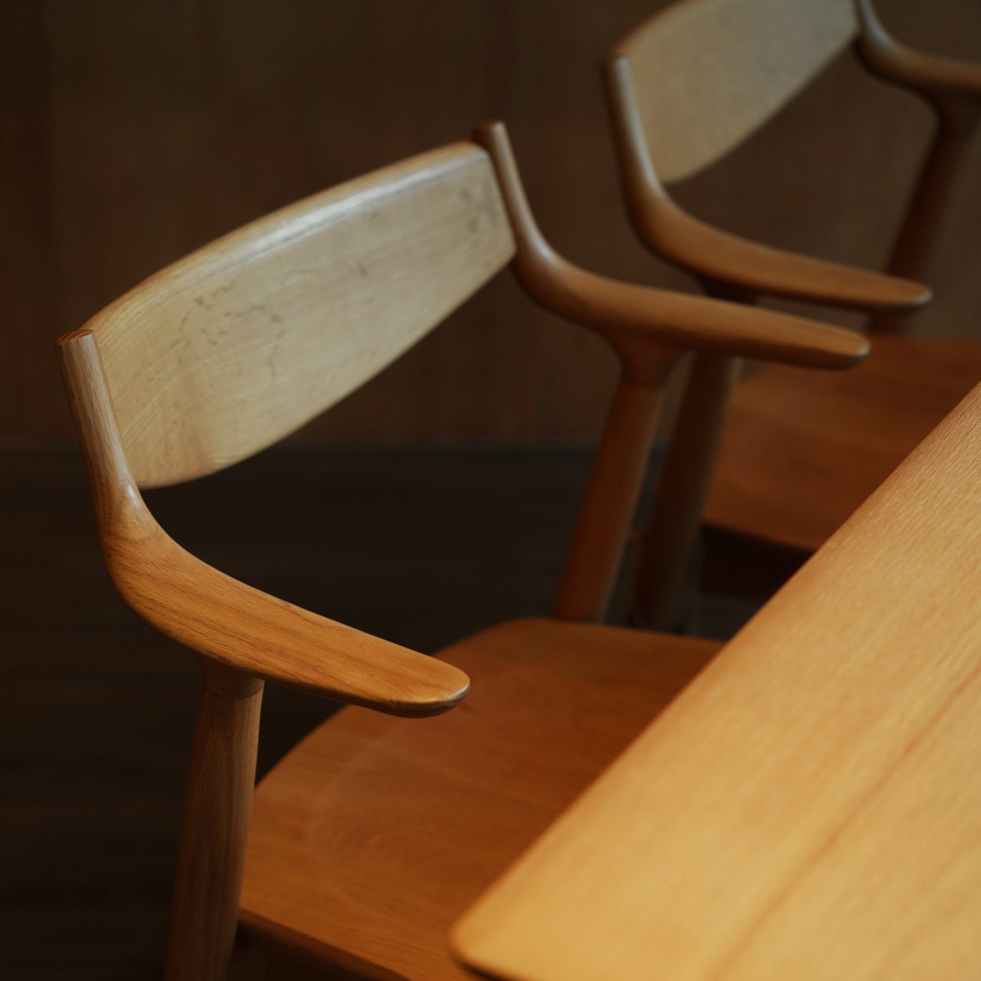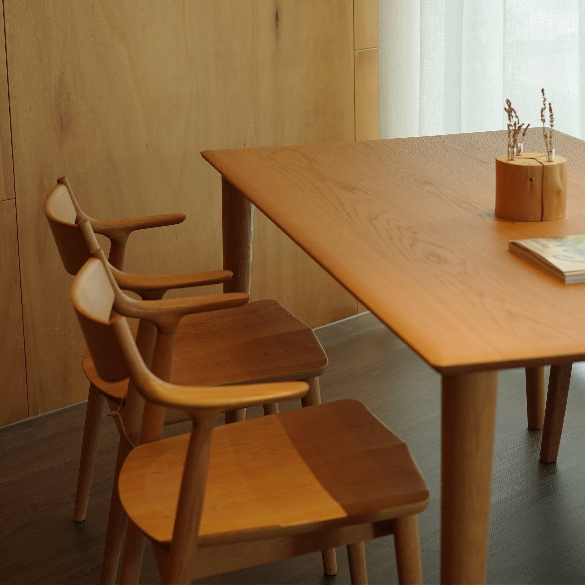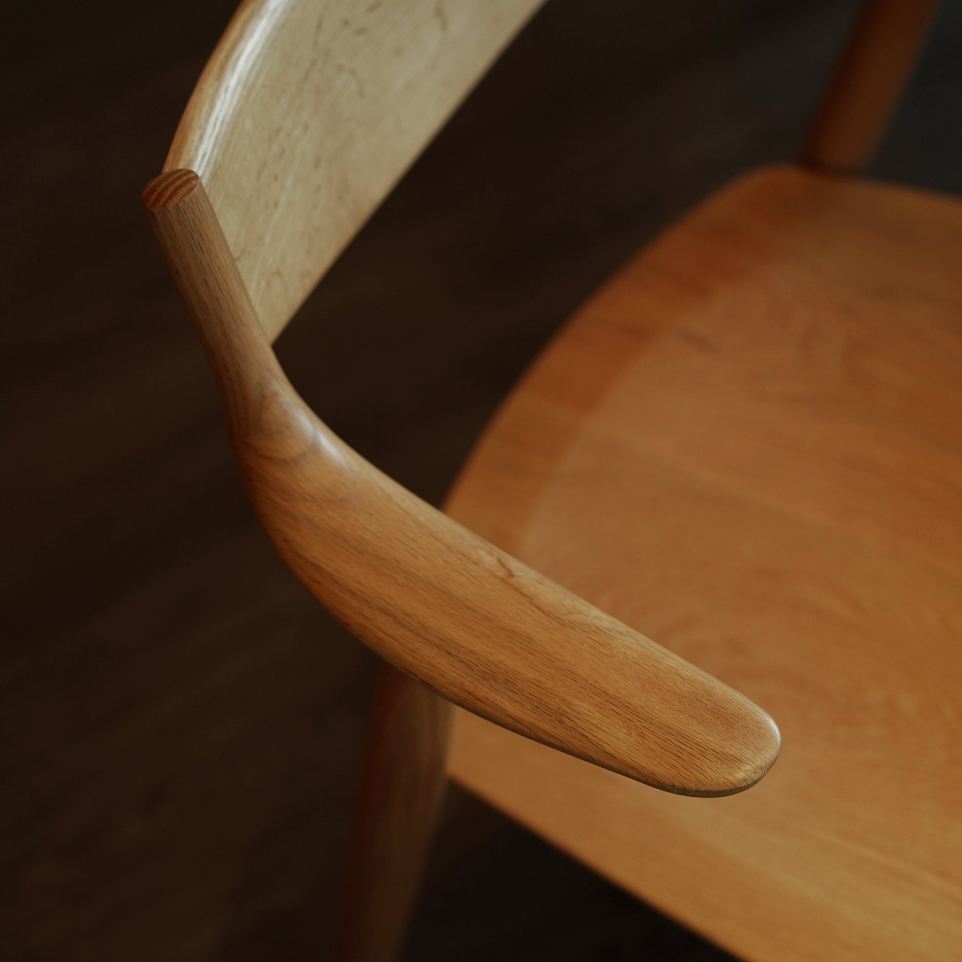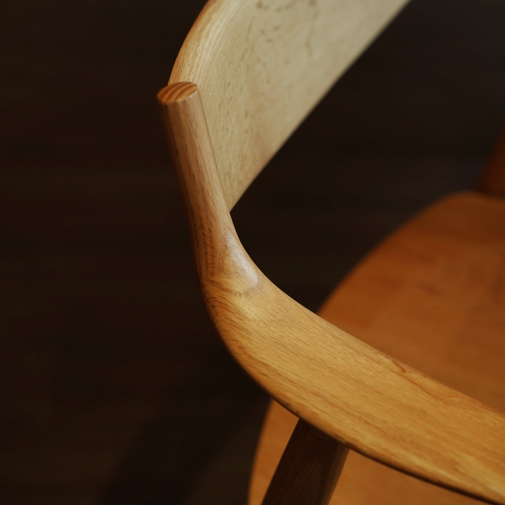 由濱西邦和(Kunikazu hamanishi)設計的 DA-7000M 餐椅,採用曲木加工技術,打造舒適貼合的椅背及弧形扶手,展現了濱本工藝職人的精湛技術。扶手為短臂設計,可掛置於桌面方便日常清潔,亦可盤腿坐於椅面不受阻礙。