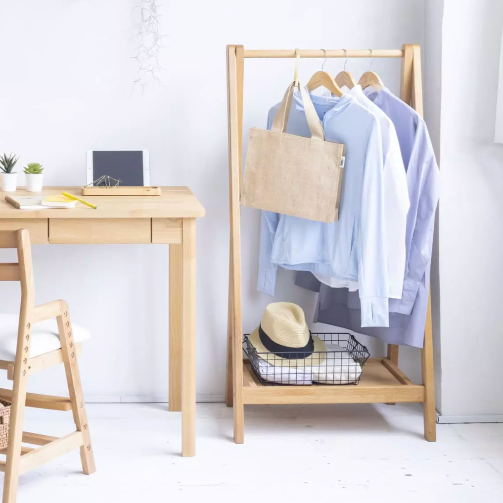 體積小巧卻具備豐富收納力的多功能掛衣架,不論是玄關、客廳、房間一隅,都能完美融入日常生活場景。底層收納平台,可放置鞋盒、儲物籃或常用包包,機能性佳。
