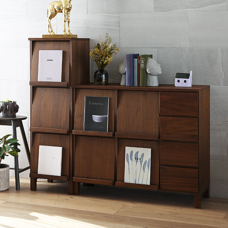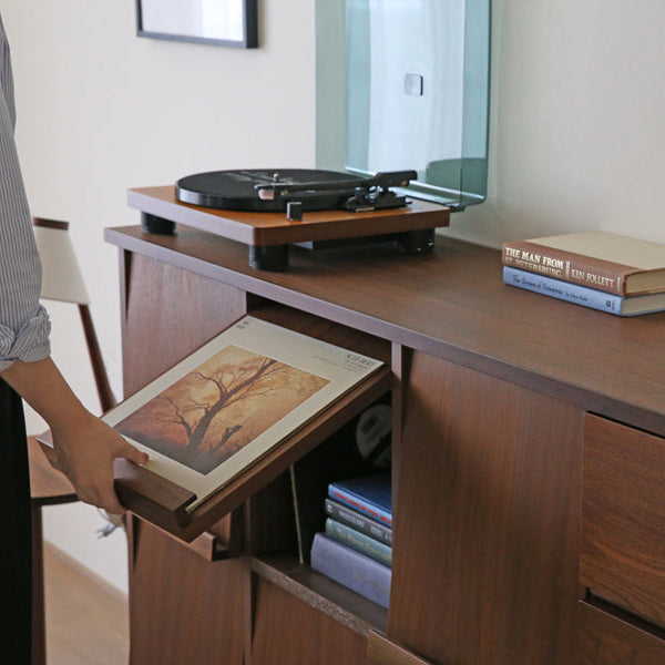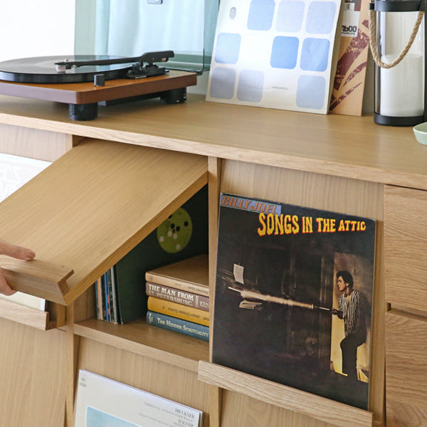 Takano Mokkou 高野木工的黑膠雜誌收納櫃,提供橡木與胡桃木材質選擇,並具備多樣化尺寸變化,可依照居家風格選出最適合的款式。