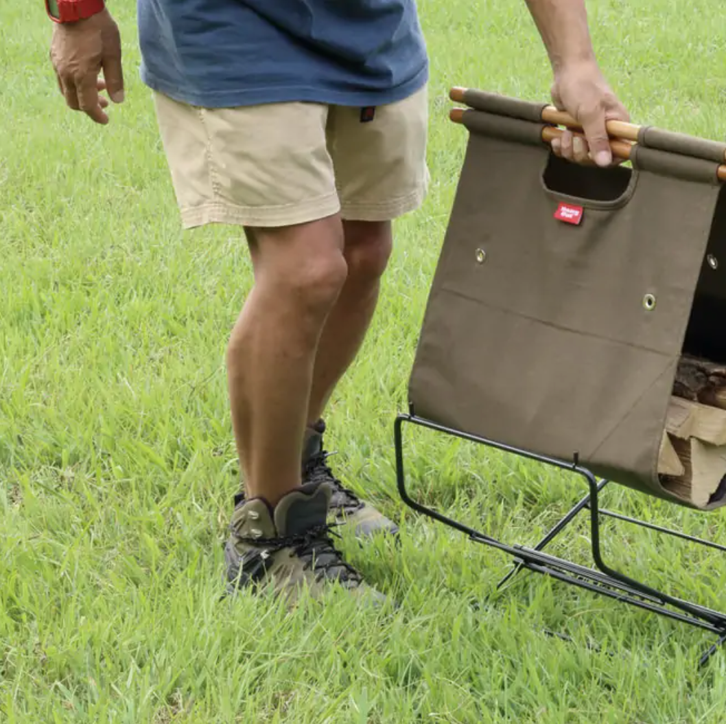 搬運一捆捆沉重的木柴不再是麻煩事。木柴收納袋為提升搬運便利性而設計,內側以強韌的 PVC 塗層加工,不僅堅固耐用,還能有效阻隔地面濕氣,保護木柴避免潮濕。手把採用手感溫潤的天然木材,表面霧面棕色塗裝,保留木紋質感同時增添防污與耐磨性。