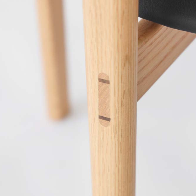 椅腳處採用高強度的楔榫接合,使餐椅穩固安全,亦展現傳統技藝之美,成就一張讓人安心依靠的理想之選。
