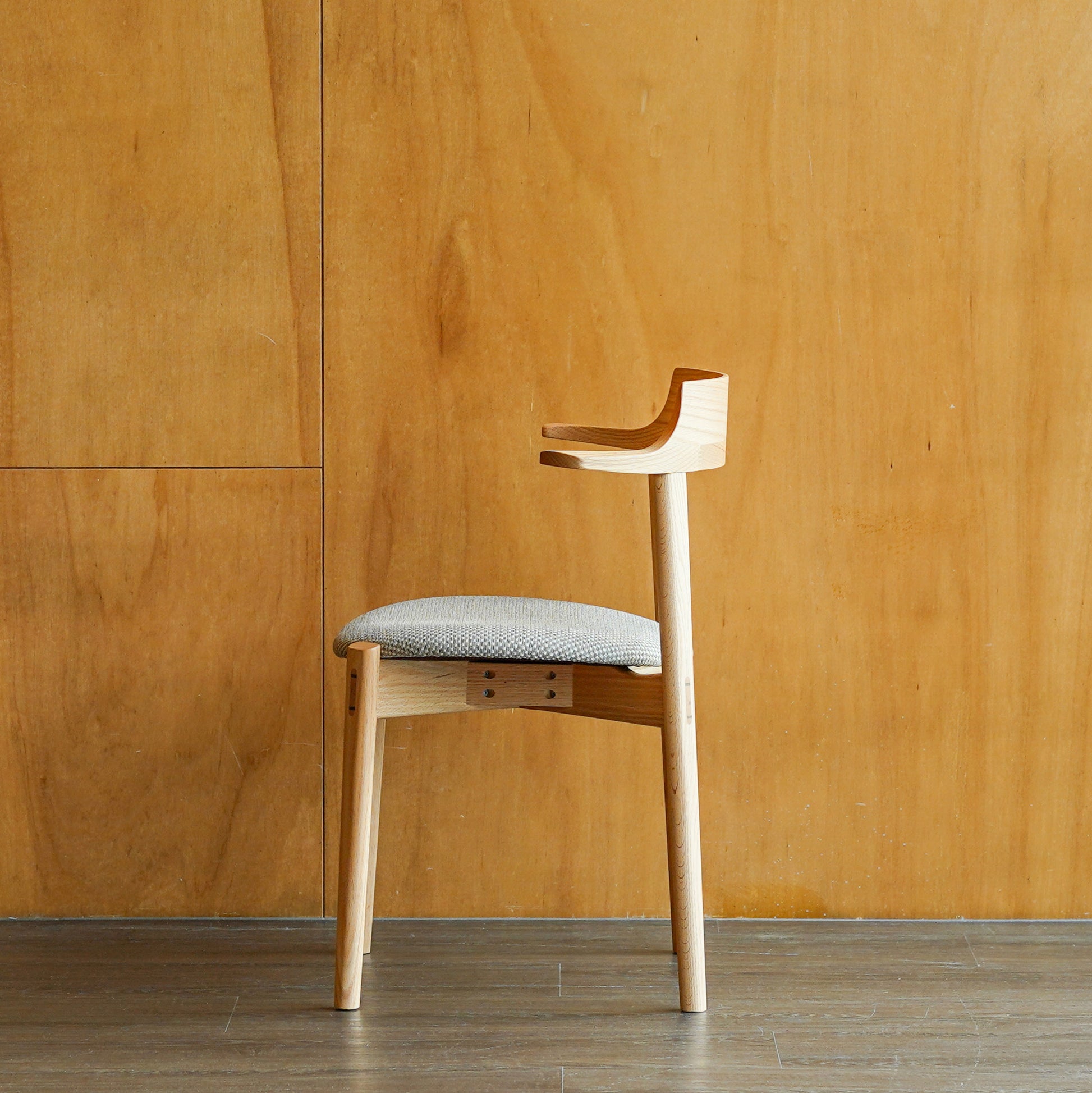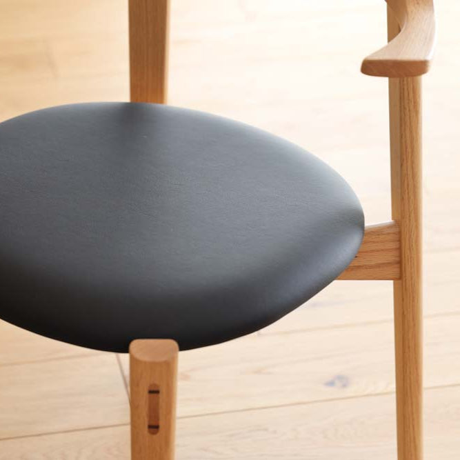 以優雅線條與實用機能完美融合為設計核心。半扶手的構造,不僅提供適度支撐,也保有出入的便利性,亦方便盤腿坐於椅面。