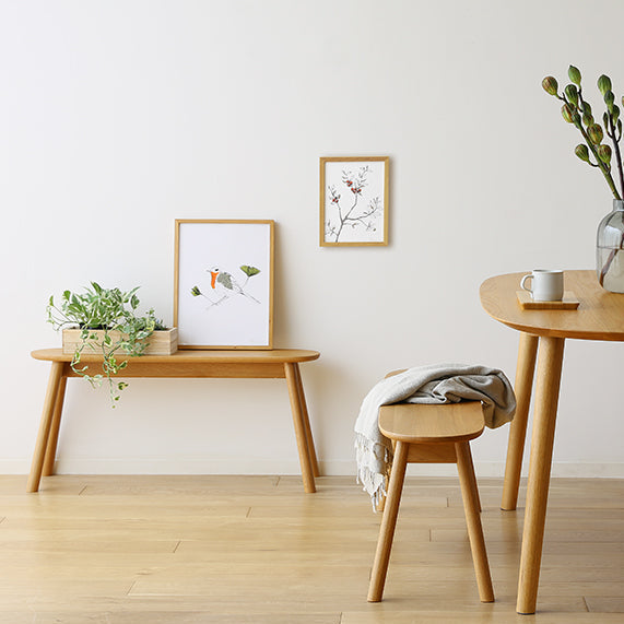 採用天然實木,將木質美感與質地直接呈現,邊緣經過圓滑處理,椅腳線條以弧形收尾,外觀優雅且提升乘坐的舒適感,在家中就能營造出咖啡館般的氛圍。