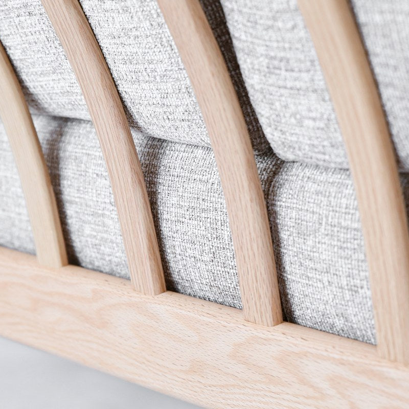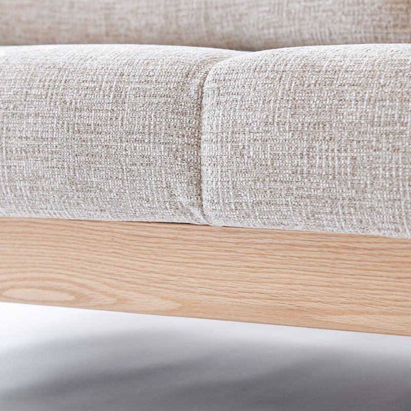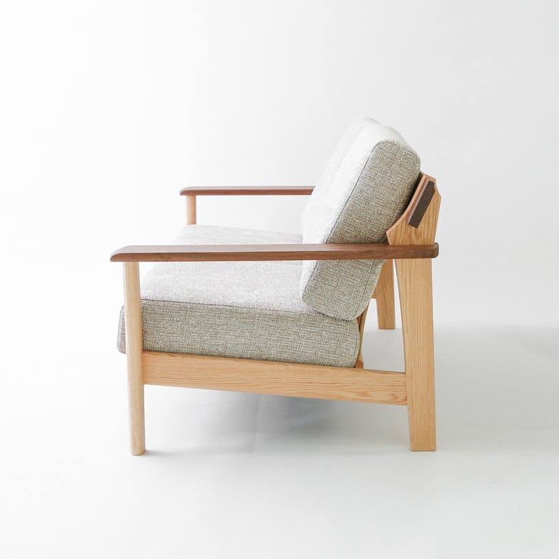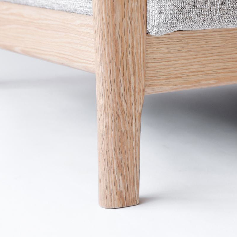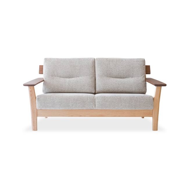 扶手處經過職人手工細膩打磨,木質紋理清晰可見,觸感溫潤滑順。沙發椅背以流暢的曲線勾勒視覺焦點,即便擺放於空間中央也不尷尬,散發自然原木氣息與優雅質感。
