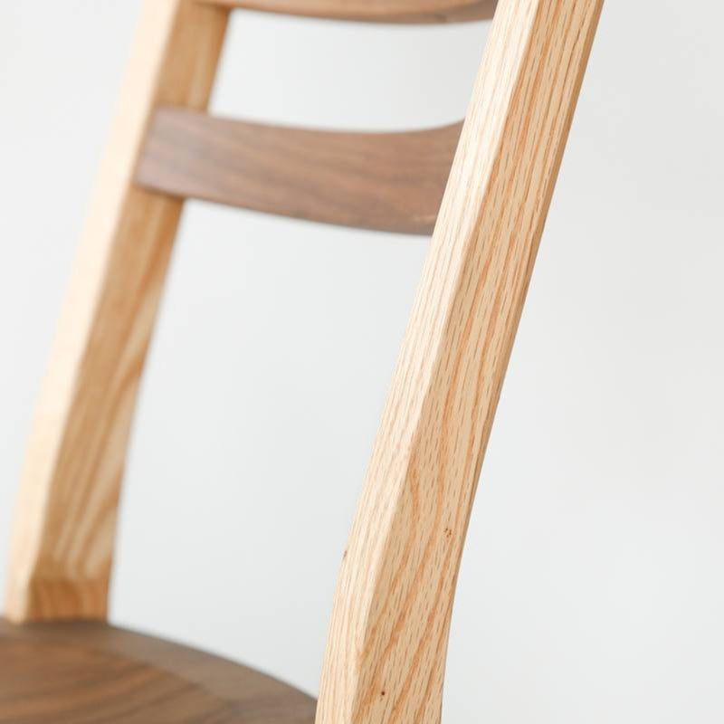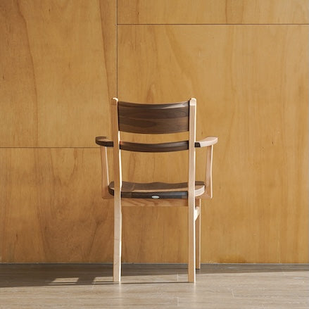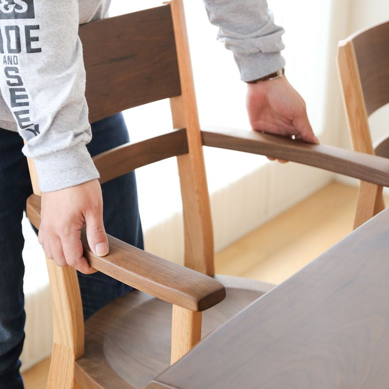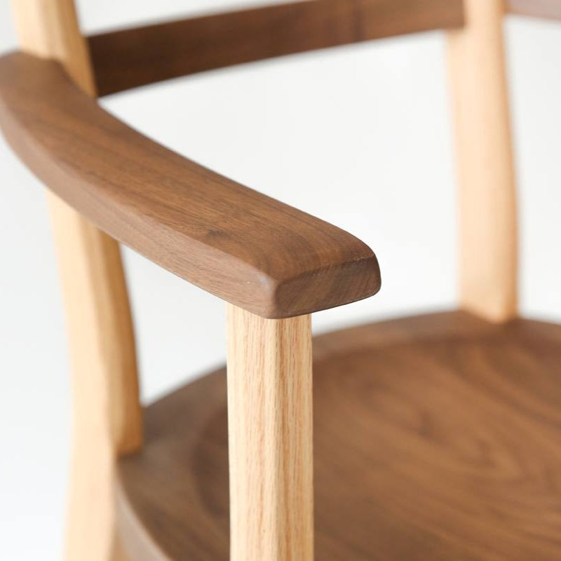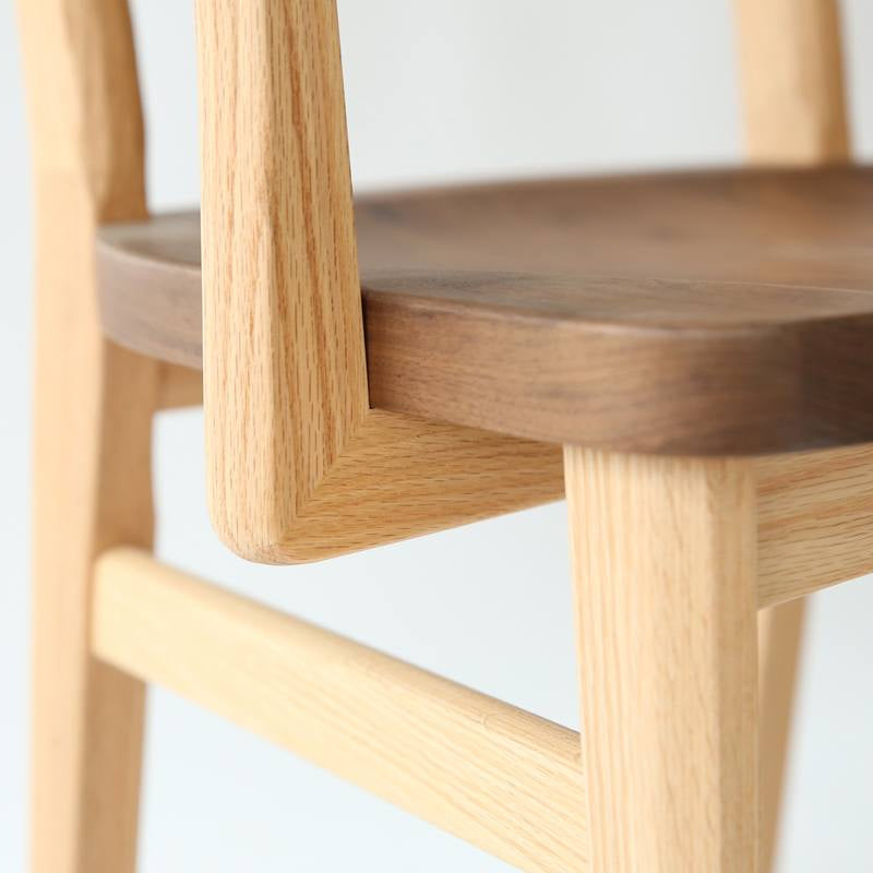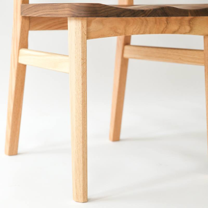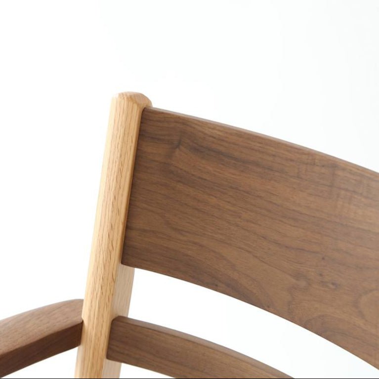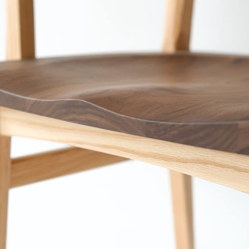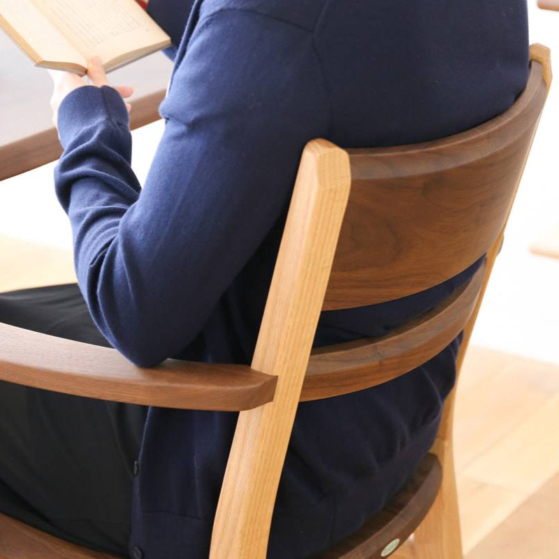 椅背曲線以人體工學為基礎,細緻調整弧度與傾角,讓背部自然貼合,長時間使用也舒適不疲倦;座面以「座彫(ざぼり)」傳統技法雕刻而成,中央微凹的曲面設計,使重心自然穩定,不需要坐墊也很舒適。