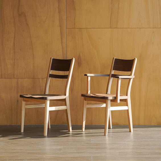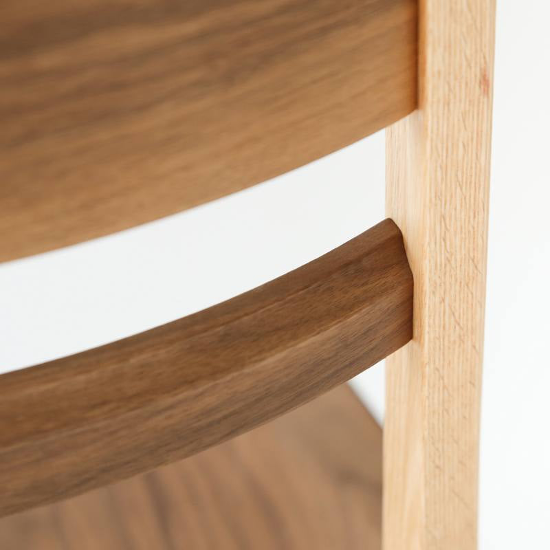 全實木製作,無需多餘的結構輔助,以最純粹的榫接與均衡設計,創作出簡潔穩固的形式。不是為了極簡而極簡,而是因為使用了紮實的木材原料,才能保持輪廓乾淨俐落,卻保有厚實的安心感。