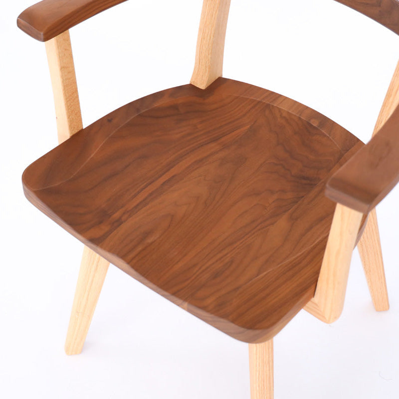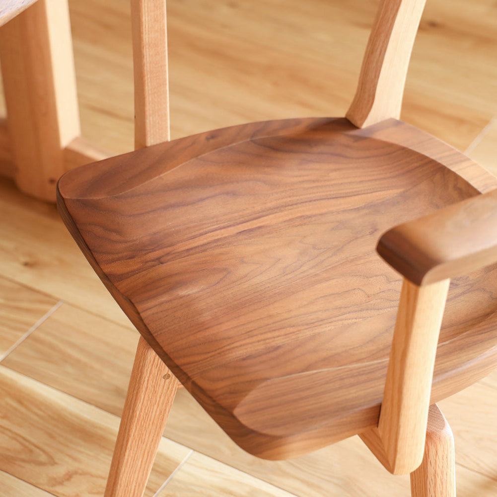 座面以「座彫(ざぼり)」傳統技法雕刻而成,中央微凹的曲面設計,使重心自然穩定,不需要坐墊也很舒適。