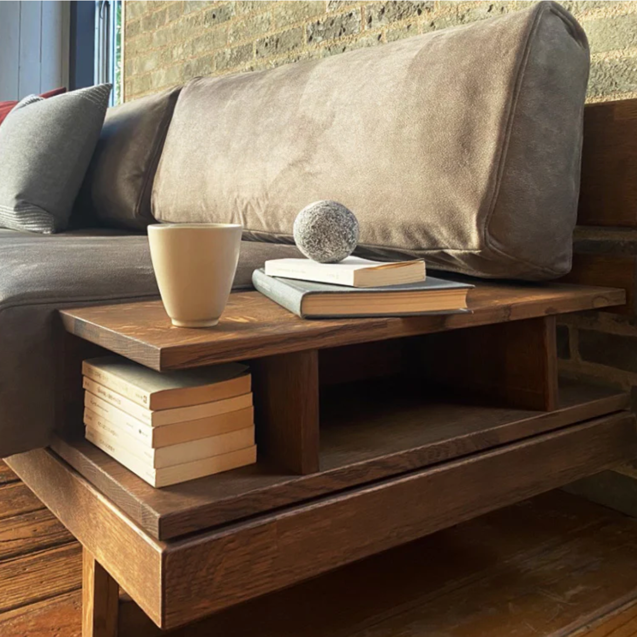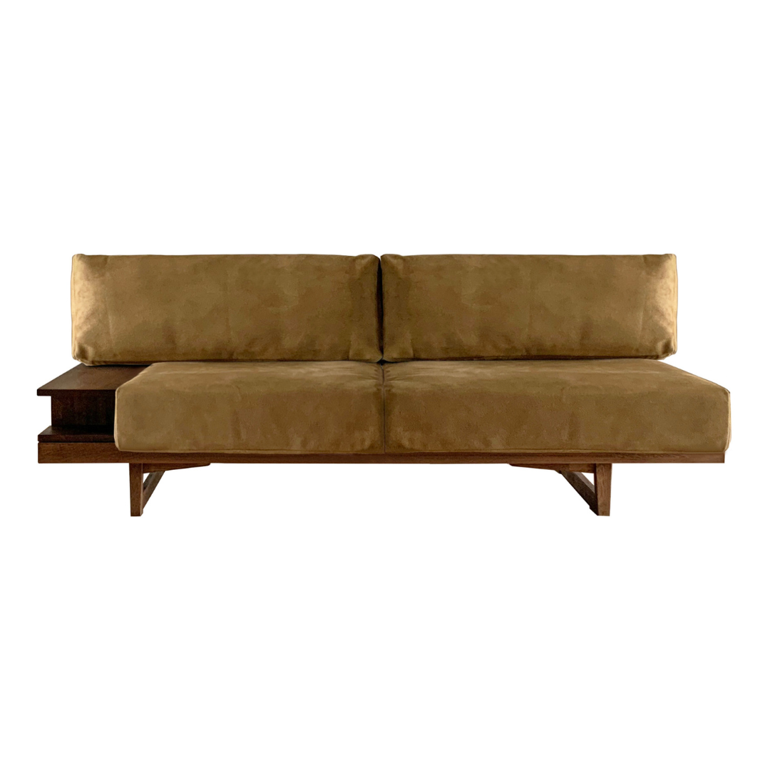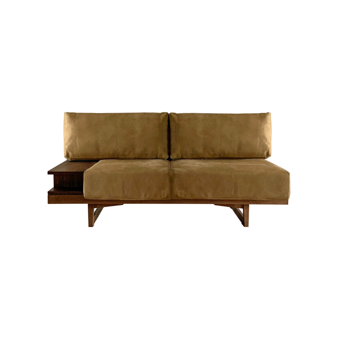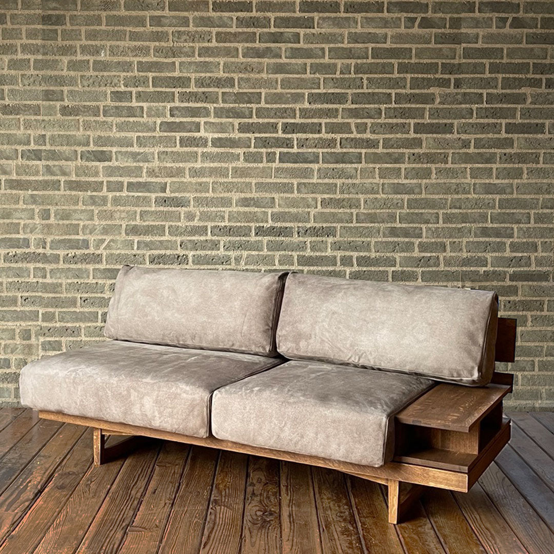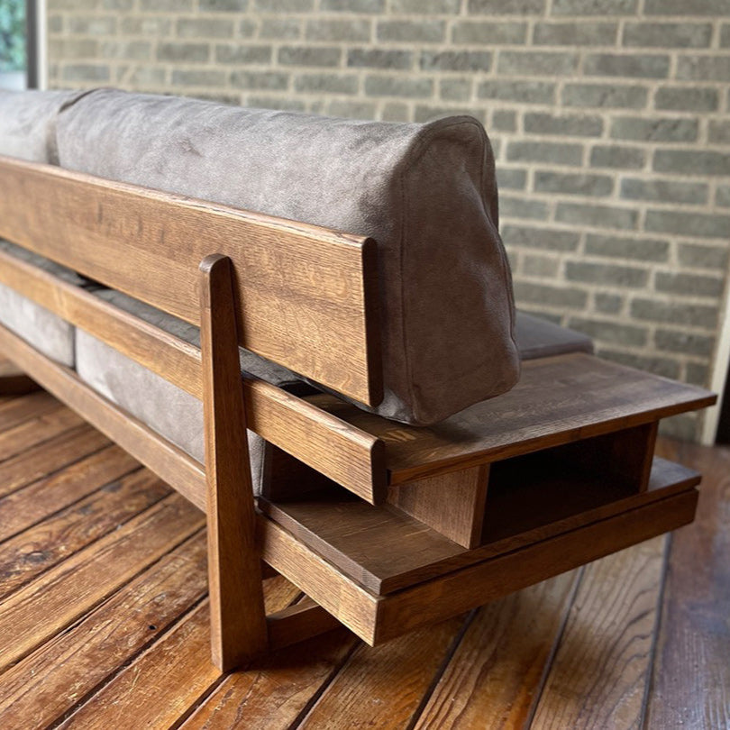 沙發採用耐刮面料,實木邊几可任意移動位置,打造多變靈巧的收納與置物機能。坐墊採用高比例聚氨酯泡棉,坐感挺立、支撐性佳。